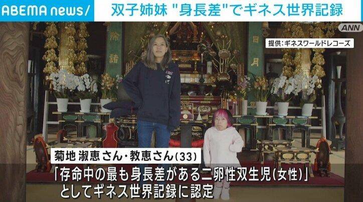 身高差达到75厘米的菊地姐妹俩,近日被吉尼斯世界纪录认证为“世界上身高差最大的异卵双胞胎姐妹”。