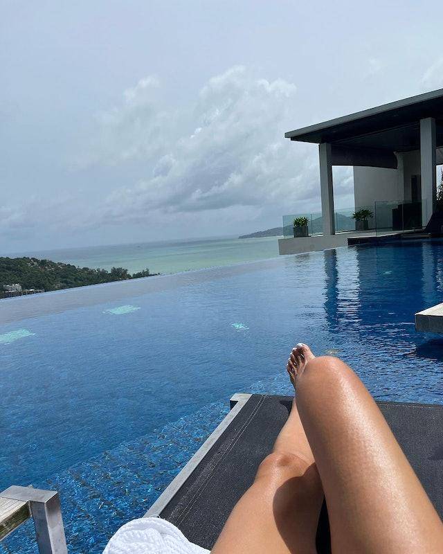 住在豪华度假酒店的她,还心情大好地秀出美腿,状态好得令人羡慕。