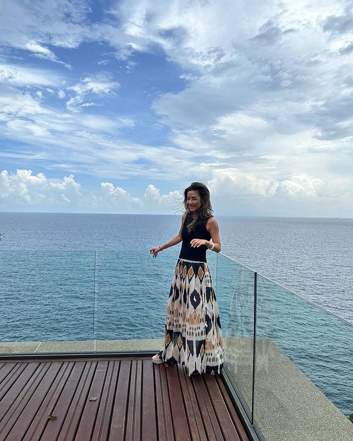 已经52岁的她拥有健康的小麦色肌肤,皮肤紧致又光滑,身材也完全没有发福,看起来依旧苗条纤细,此外她的容貌也仍然非常出众,整个人魅力不减当年。