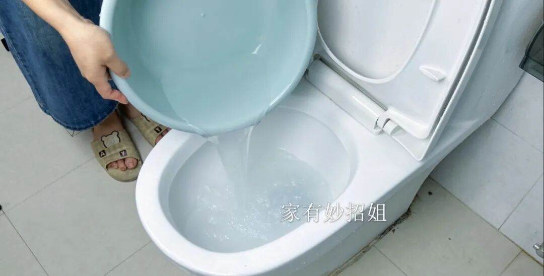 你用桶倒水沖,水封線就下降了,不僅會有異味,還會破壞馬桶的吸力。